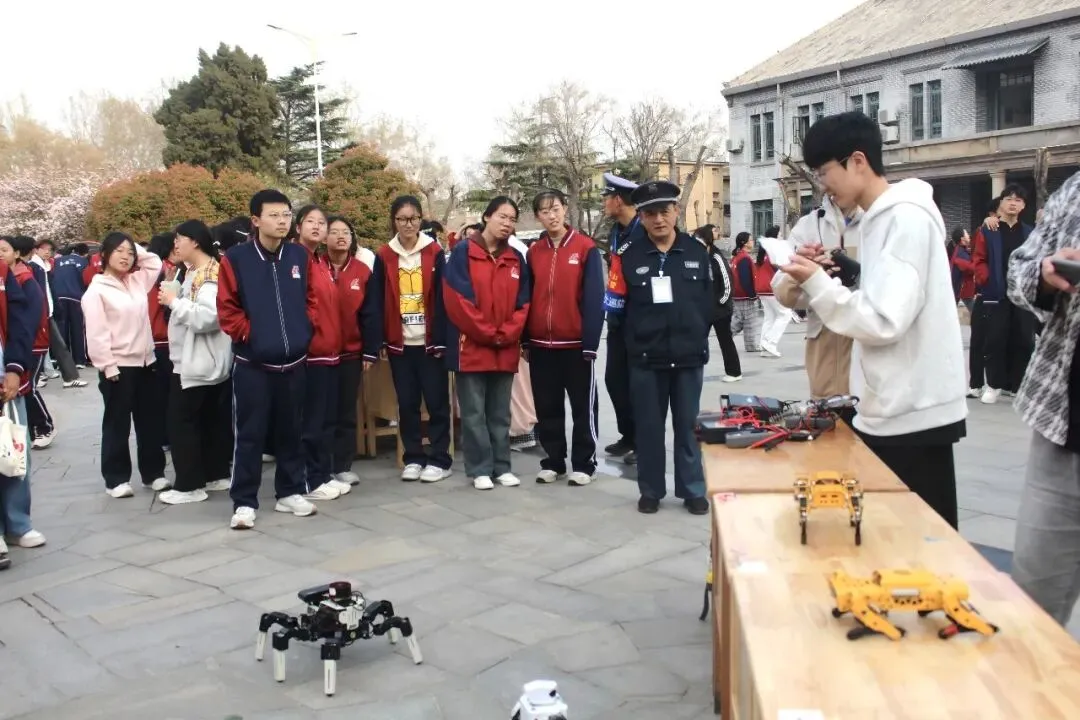 活动现场,科创与人文交相辉映,教学与实践同向同行。机器人社团带来智能人形舞蹈机器人、四足仿生机器狗、六足蜘蛛机器人等多款智能装备,现场演示灵动舞蹈、灵活行走、精准作业等炫酷操作,细致讲解舵机配置、运动控制、智能感知等核心技术,结合生活与工程应用场景科普知识,充分激发了同学们对机器人与智能装备领域的探索热情。