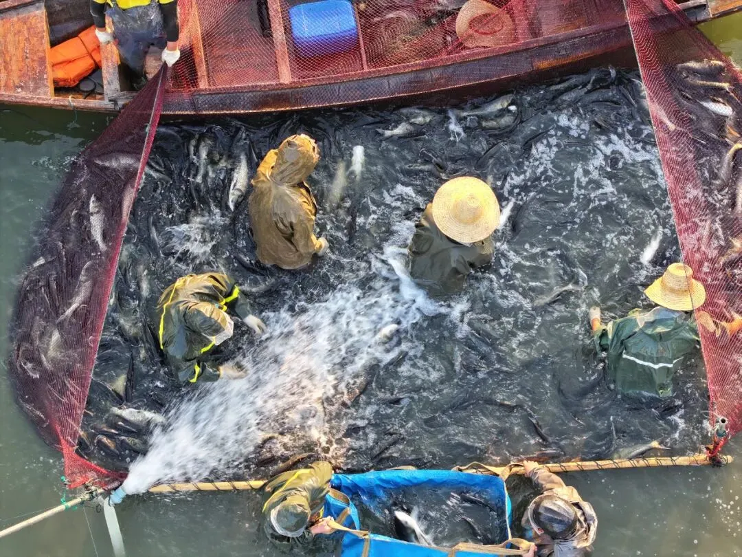 1.湖泊位置。采桑湖位于湖南省岳阳市君山区,水域面积9283亩,水深1.5—2.0米,是典型的浅水藻型湖泊。2.养殖权属。根据《君山区养殖水域滩涂规划(2021—2030年)》,该湖属限养区,湖南君山生态渔业集团有限公司依法取得水域滩涂养殖证。1.构建智慧监管体系。采取人放天养模式,并应用物联网、人工智能和大数据分析技术,构建采桑湖渔业环境的实时监测和智慧管理体系。2.投放种类合理搭配。每年2—3月和8—10月投放鱼苗,其中90%—95%为0.2—0.4斤/尾的鲢鳙,每亩投放25—30尾,剩余5%—10%投放鲫、鳊、草、鲤等鱼类。3.优化起水策略。在1月、8月、12月起水。采用“水质传感器+无人船+无人机”对水质全方面监测,利用声呐探测和鱼类成像技术,优化鱼苗投放和起水策略。1.延长产业链条。依托采桑湖优质水产品,建设风干鱼科技园,开发即食、预制及精深加工产品,配套仓储与冷链物流,带动采桑湖周边区域8000余人就业。2.建设品牌。推行采桑湖生态水产品产地、质量、等级的标识制度,擦亮生态水产品加工品牌。3.渔旅融合。建成采桑湖观鸟民宿酒店和400个钓位的生态野钓基地,推出渔旅体验线路和特色餐饮,打造采桑湖观鸟垂钓、湿地科普的特色研学线路,实现渔业文旅与研学教育双赢。技术依托单位:湖南农业大学、中国农业大学、北京国渔科技有限公司