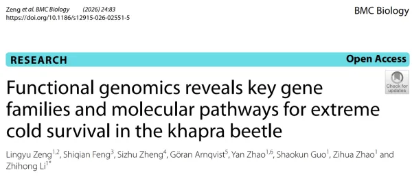 近日,农林生物安全全国重点实验室、农业农村部植物检疫性有害生物监测防控重点实验室、中国农业大学植物保护学院李志红教授团队在国际学术期刊《BMC biology》发表了题为“Functional genomics reveals key gene families and molecular pathways for extreme cold survival in the khapra beetle”的研究论文,揭示了谷斑皮蠹(Trogoderma granarium Everts)应对低温胁迫的关键基因家族与生存分子机制。