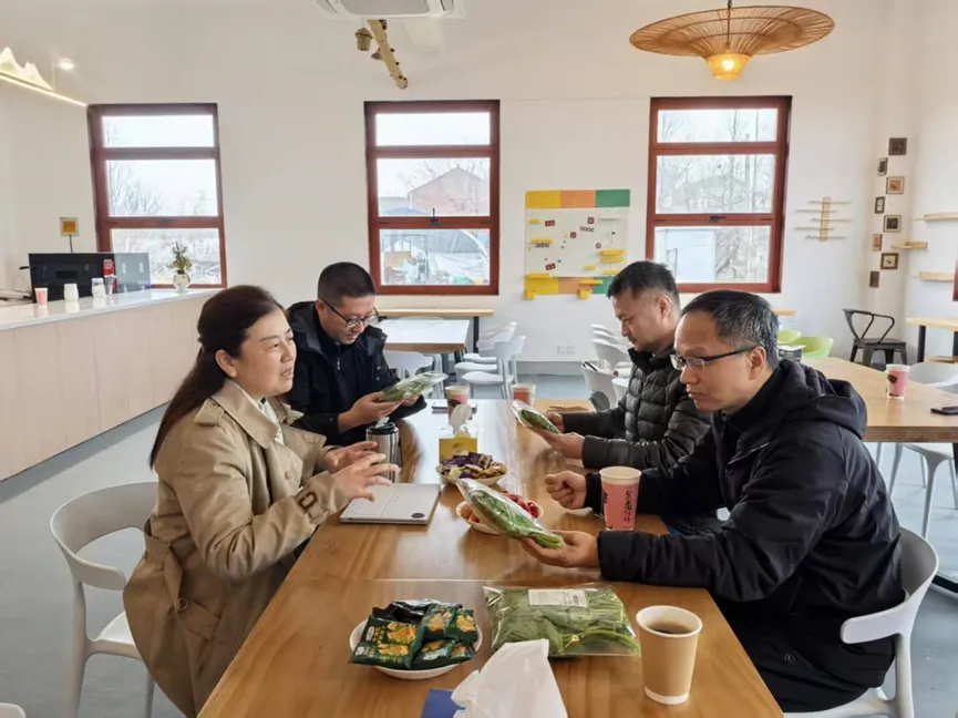 会后,中心科技团队深入藜麦菜种植基地,实地察看作物长势,就栽培管理、茬口衔接、采收标准等关键技术环节与合作社人员进行现场交流指导。科技人员还现场品鉴了多种不同风味的藜麦菜特色产品,为后续产品开发提供参考。