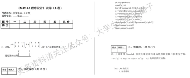 MATLAB程序设计与应用-试卷预览