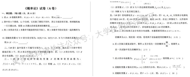 特别是历年期末试卷