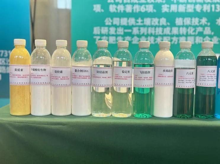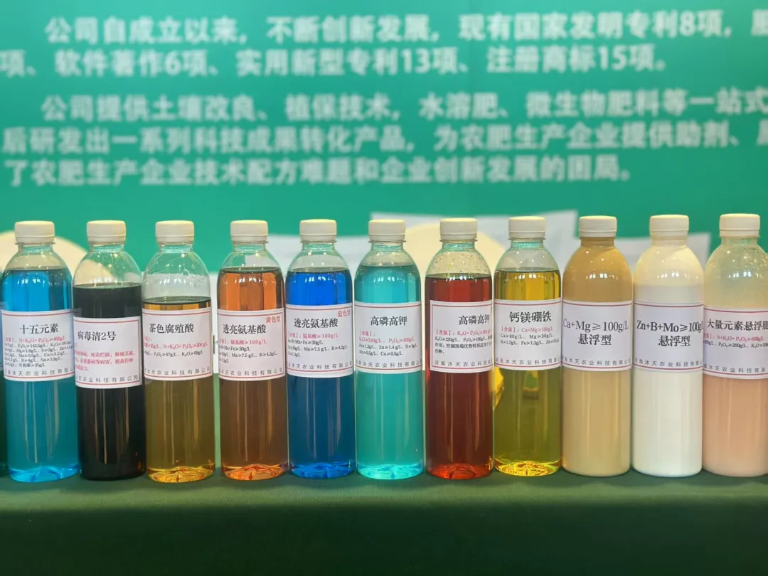 公司增效核心产品“促控素、黄质素、多维菌素、菌益素、根力达、牛磺酸衍生物、水绵处理助剂、蚯蚓脂肪酶”等;助剂类产品“飞防助剂、复合稳定剂、润湿剂638、成膜助剂、抗逆剂585、螯合剂599A等”,一致获得业内好评和认可。