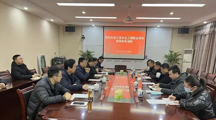 2022年2月24日下午,江西农业工程职业学院党委书记张新春、院长杨帆、副院长许振华一行来学院学习交流,并在行政楼四楼会议室召开交流座谈会。学院党委书记盛闵贵、院长刘孟桦、副院长鲁思海陪同。