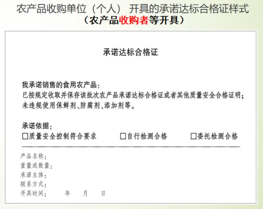 2.农产品收购单位(个人)开具的承诺达标合格证样式