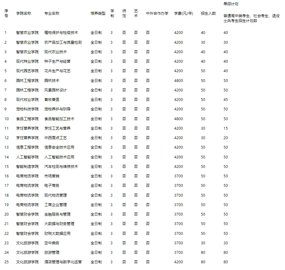 2026年单招考试招生计划