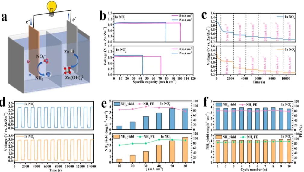 图 5:Zn - 硝酸根 / 亚硝酸根电池的实际应用性能