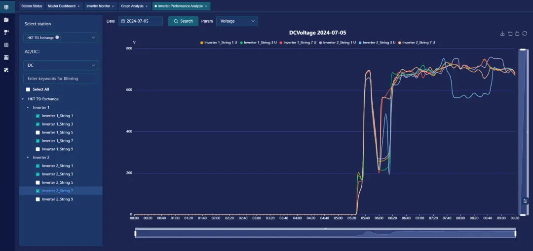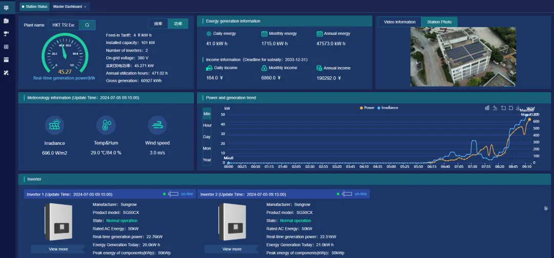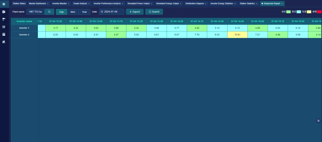 7×24小时监测逆变器、汇流箱、组串、线缆温度、漏电流、环境辐照等参数。