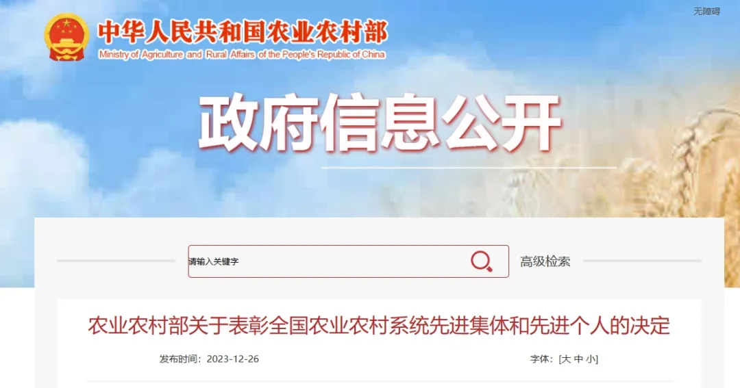 近日,农业农村部公布《农业农村部关于表彰全国农业农村系统先进集体和先进个人的决定》,授予200个单位“全国农业农村系统先进集体”称号,授予592名同志“全国农业农村系统先进个人”称号。