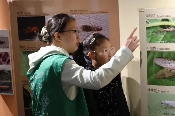 为帮助观众更好地理解展品内涵,中国农业大学昆虫博物馆在展览期间组织志愿者团队开展现场讲解服务。多名志愿者分布于展厅各处,围绕昆虫的生活习性、生态关系、标本制作工艺等内容,为观众提供专业细致的解说,尤其受到了青少年观众们的欢迎。不少家长表示,志愿者的讲解细致全面,让孩子们在观展过程中既丰富了知识,又开阔了眼界。