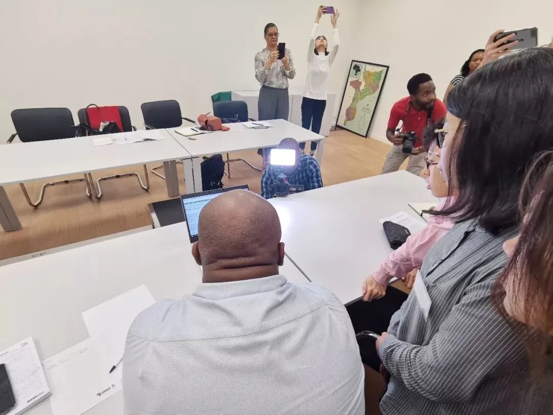 莫桑比克农业部的技术官员正在向中国记者团展示使用CropWatch