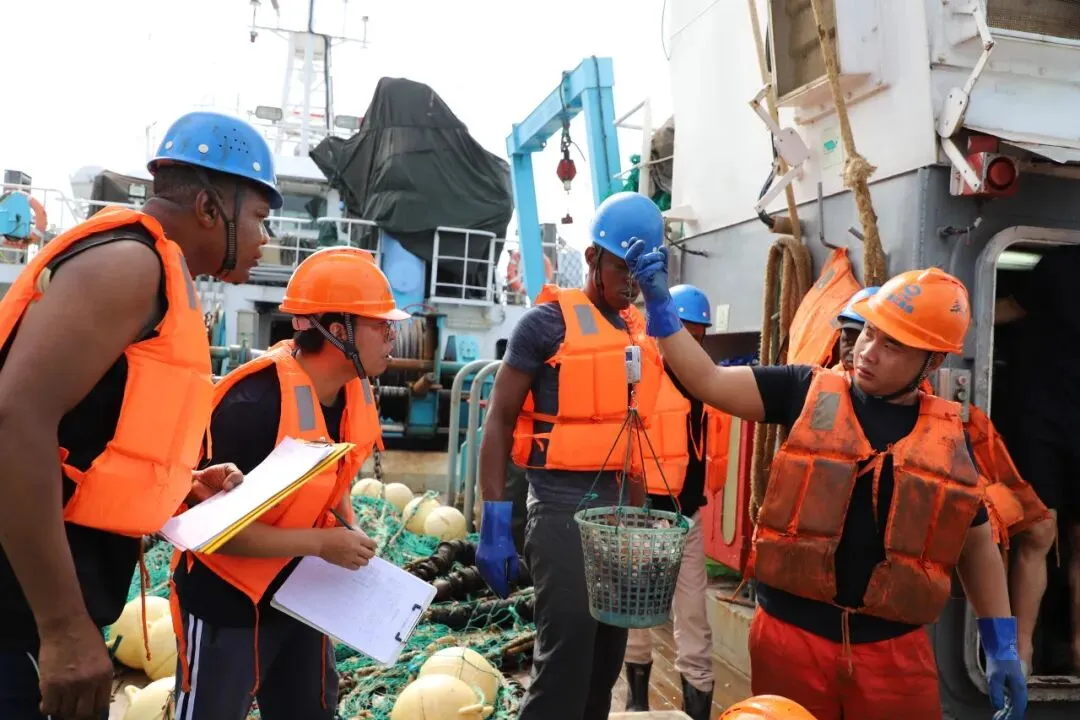 2019年8月初抵塞国,队伍里年仅18岁的船员小赵得了面瘫,幸好在中塞友好医院,援非中医银针如神,二十余日精心针灸终使他笑容重现。也正是利用这段时间,我们技术组与塞方人员就调查方案进行了细化,从站位布设、取样方法到数据分析,一套严谨的中国调查标准在交流中逐渐成型,为后续探海铺平了道路。