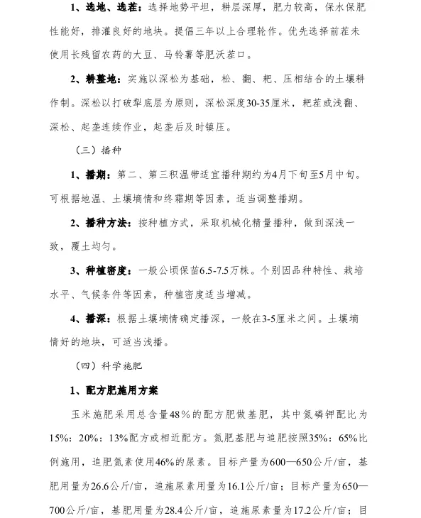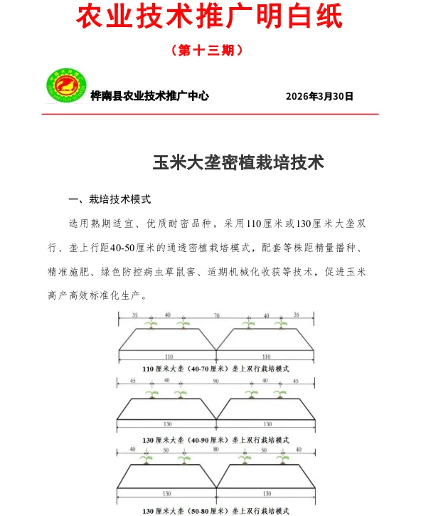 >农业技术推广明白纸(第十三期)玉米大垄密植栽培技术