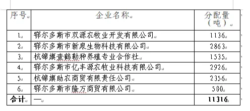本次储备任务分配,严格按照工作方案要求,结合企业综合评审得分及2025年全旗秋季动物免疫头数、过往饲草料储备履约业绩等指标核定。本次饲草料储备总量11316吨,具体分配如下: