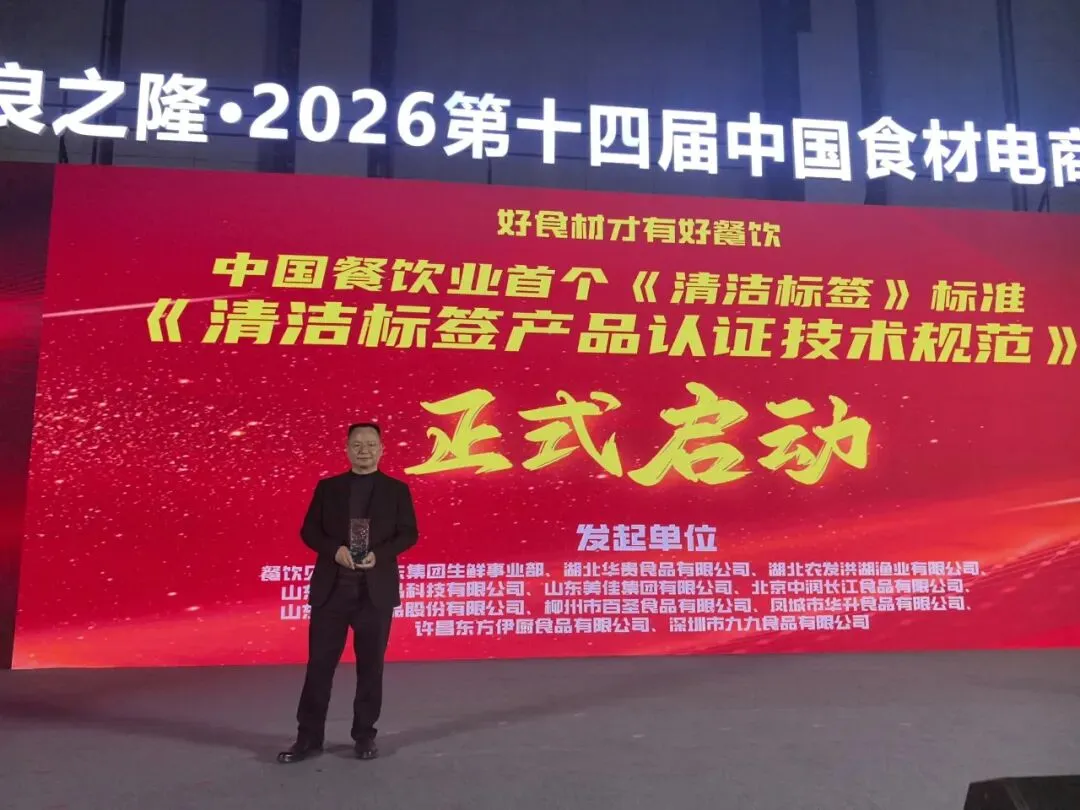 在2026年武汉第二届中餐场景供应链品牌节上,中国500强企业湖北农发集团旗下洪湖渔业(湖北农发洪湖渔业是由中国水生蔬菜领军企业华贵集团和中国五百强农发集团共同成立),作为中国餐饮界首个《清洁标签》标准的联合发起单位,与京东生鲜事业部及华贵集团共同发起清洁标签,以大湖品质为餐饮食材供应链的透明化与规范化树立了全新标杆。