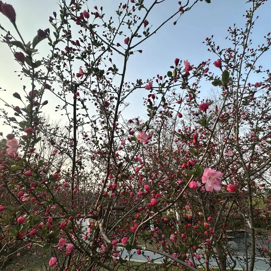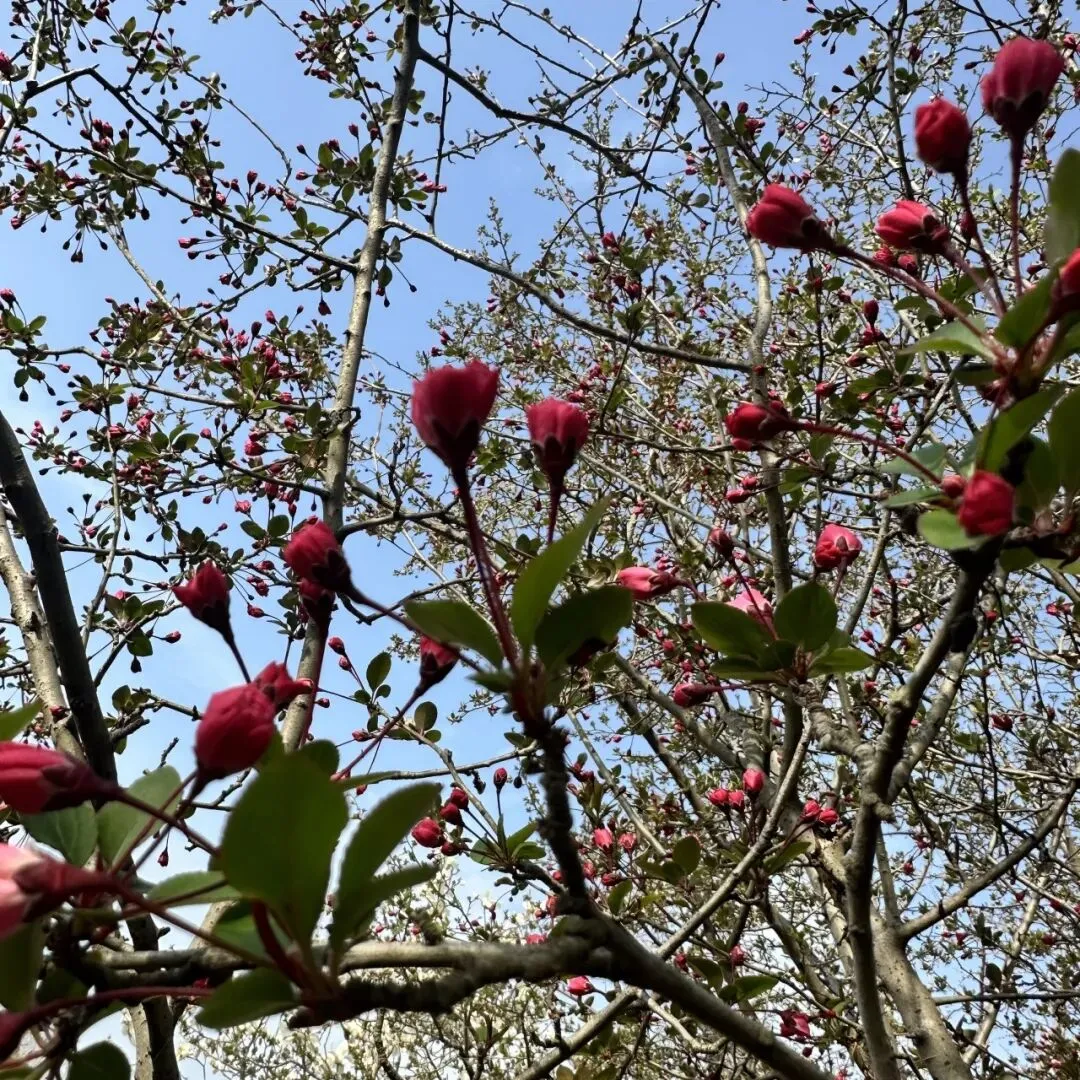 垂丝海棠 · 含羞的少女心事,花梗细长,花朵低垂,像极了少女低头时的羞涩。粉红的花苞鼓鼓的,藏着欲说还休的心事。待她盛放时,满树繁花如锦,却依旧低着眉——美而不自知,才是真的动人。