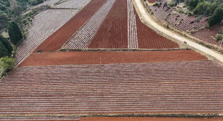 走进岩竹村,向西南岩峰口一带望去,818亩梯地如巨幅画卷铺展在山坡之上。这是上世纪六七十年代,在“农业学大寨”的浪潮中,岩竹人民完全依靠人力,一锤一凿、肩挑背扛,在原本寸草难生的荒山石坡上开凿出的“大寨地”。数十公里石砌地埂蜿蜒盘绕,如巨龙锁山,将曾经贫瘠的荒坡,化作了层层叠叠的沃土。