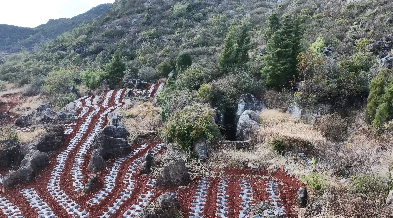 在沾益区大坡乡岩竹村,向西北方向驱车29公里,有一处藏于群山褶皱中的奇迹。这里海拔2200米,云遮雾绕之下,不是天然胜景,而是一段被石砌地埂与引水岩槽铭刻的奋斗史诗——岩竹农业学大寨遗址。