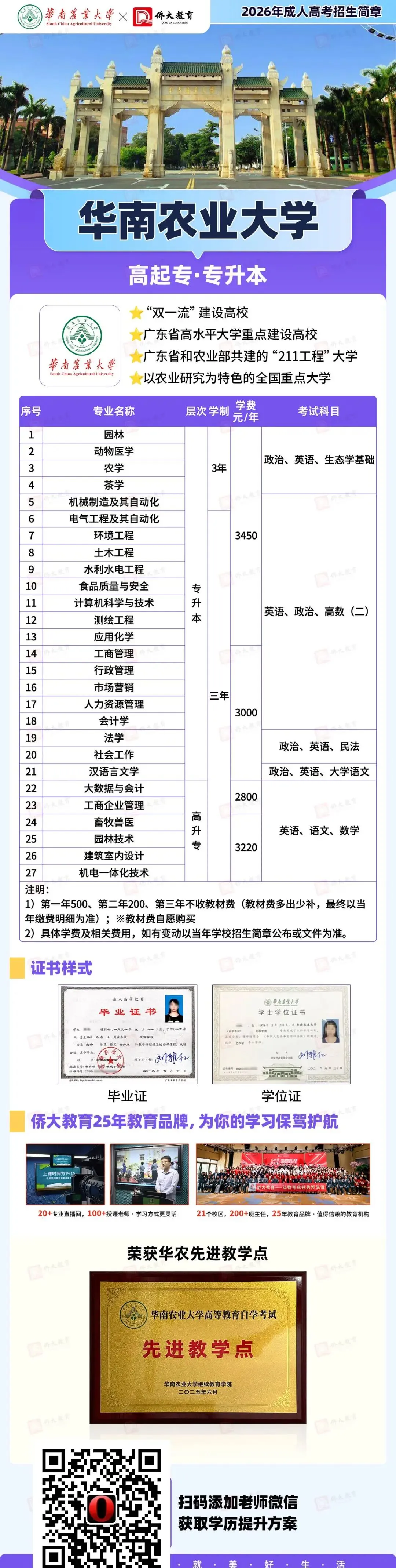 华南农业大学是广东省高水平大学重点建设高校,全国重点双一流高校,以农业研究为特色的华南地区最好高校!品牌特色专业有:农学,茶学,动物医学,畜牧兽医,化工应用,园林等等特色专业……华南农业大学,学习模式:以网课,线上考试为主,特别适合上班族,边工边读!学位论文方面,也是比较宽松!是打工族,考公考编考资格证首选之一!