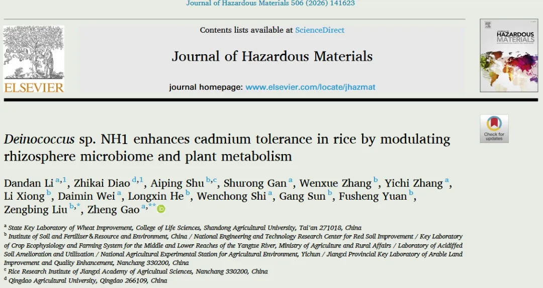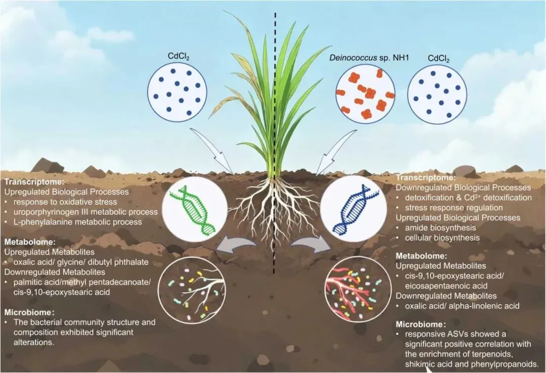 题目:Deinococcus sp. NH1 enhances cadmium tolerance in rice by modulating rhizosphere microbiome and plant metabolism