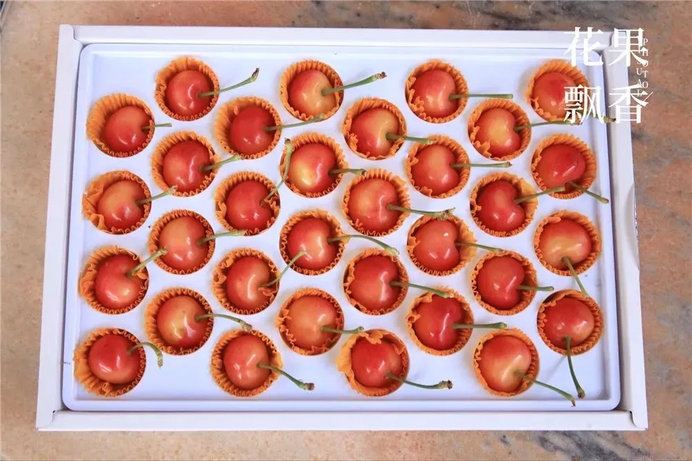 “这一盒樱桃卖多少钱?”我指着杨鹏从包装车间拿出来的32粒装的精品盒问道。包装很精致,每一颗樱桃都垫着蛋糕纸一样的纸垫,白底红果,煞是好看,有一种不忍心下手的感觉。