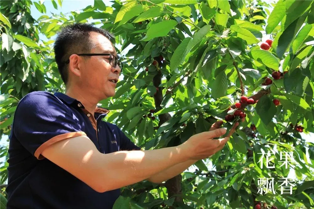 杨鹏在查看露地樱桃的品质情况