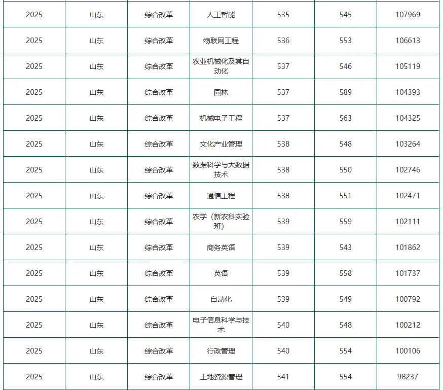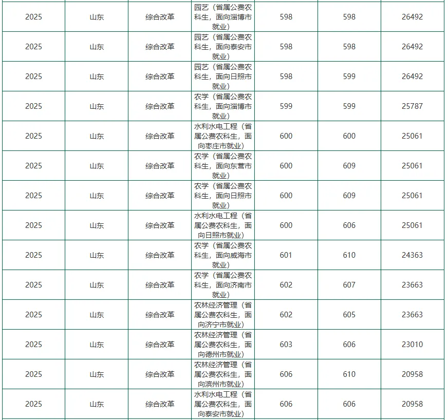 - 农科优势突出,底蕴深厚:始建于1906年,已有118年办学历史,是山东最早的高等农业教育机构。拥有作物学、园艺学两个博士后科研流动站,作物栽培学与耕作学为国家重点学科,农学、植物保护、园艺学为国家级特色专业。
