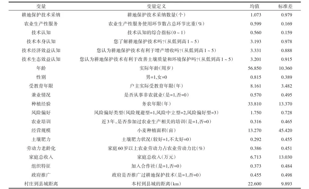 基于此,文章基于黄淮海平原小麦种植户调研数据,致力于探究农业生产性服务对农户耕地保护技术采纳行为的影响,并进一步从技术认知视角阐释农业生产性服务对耕地保护技术采纳的作用机制。