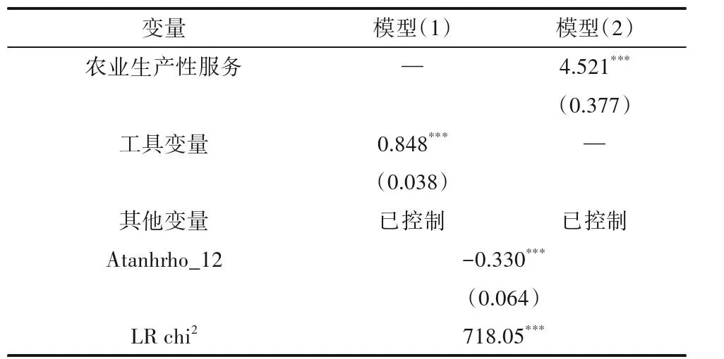 考虑到农业生产性服务与耕地保护技术采纳行为之间的内生性问题,采用本村内其他农户农业生产性服务参与程度作为工具变量,该研究采用Roodman提出的条件混合过程法(CMP)进行估计检验,CMP基于极大似然法,通过建立递归模型来估计多阶段回归模型,通过检验误差项相关性是否等于0,判断模型是否存在内生性。估计检验结果见表4,村内其他农户农业生产性服务参与程度在1%水平上显著正向影响农户农业生产性服务参与程度,说明模型存在内生性问题,从第二阶段模型(2)可知,在考虑内生性问题后,农业生产性服务对耕地保护技术采纳行为影响显著为正,实证结果与理论分析一致,表明基准回归结果的有效性并没有受到内生性问题。