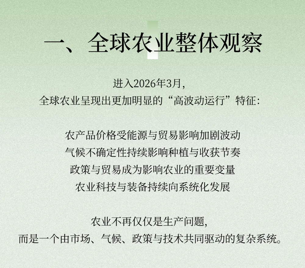 >全球农业月报丨2026年3月全球农业新闻汇总