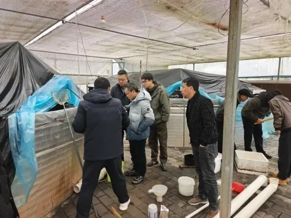 牛皇村作为兴隆镇特色农业发展重点村,近年来依托良好的生态环境,积极发展生态养殖、特色种植等产业。其中,工厂化设施养殖作为该村重点培育的新兴产业方向,目前已初具规模。在兴隆镇及牛皇村相关负责人的陪同下,专家组实地察看了牛皇村工厂化循环水养殖基地的车间布局、水循环系统运行及苗种培育情况,并与基地负责人深入交流,详细了解水质管控、成本控制及经济效益等相关情况。针对基地发展中的瓶颈问题,专家现场“把脉问诊”,围绕精准饲喂管理、水质动态调控、病害生态防控、尾水资源化利用等方面提出系统性优化建议,并就养殖设施升级改造、养殖模式创新等提出指导意见,引导基地进一步节能降耗、降低养殖成本,切实提升设施养殖生产效益。