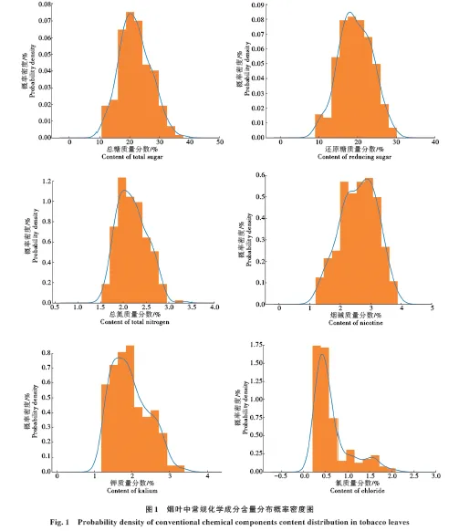 烟叶样品是采集于河南、云南、贵州、四川、福建、湖南、黑龙江等产区的210份C3F和B2F初烤烟叶。烟叶总糖、还原糖、烟碱、总氮、钾和氯含量测量参考烟草行业标准。将烟叶样品烘干后研磨成粉末,利用傅里叶变换近红外光谱仪进行光谱采集。