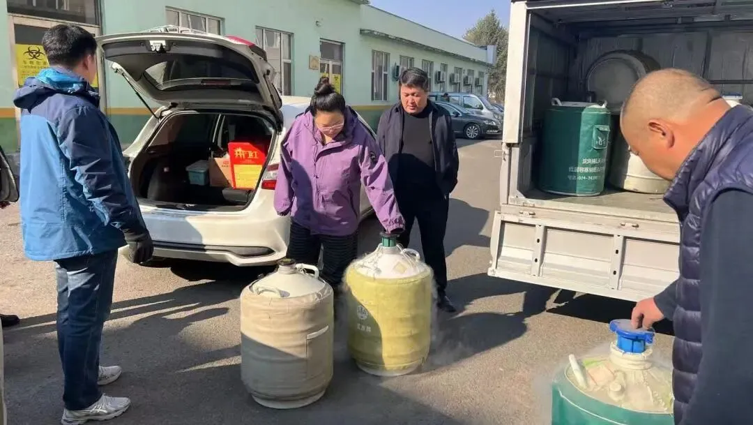 3月27日,抚松县畜牧总站为各乡镇繁改点派送液氮。