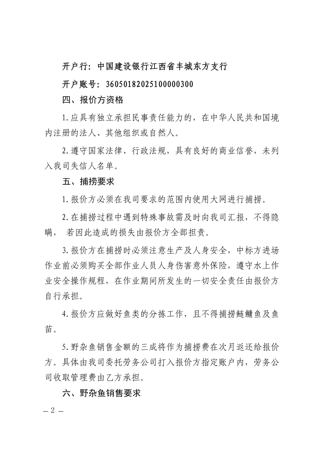 >丰城水投生态渔业发展有限公司杂鱼捕捞销售询价公告