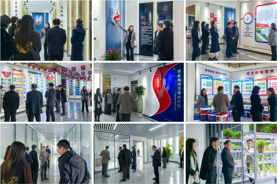 校方领导一行在常大勇董事长的陪同下,参观了固特丽生物科技展厅与凯多海洋生物研究院。从三大核心技术的研发历程,到“复酶糖苷”“痘丽净”“果颜红”等明星产品的田间效果,从70余项国家发明专利到1项国家标准、9项团体标准的制定,固特丽的硬核实力给来访嘉宾留下了深刻印象。