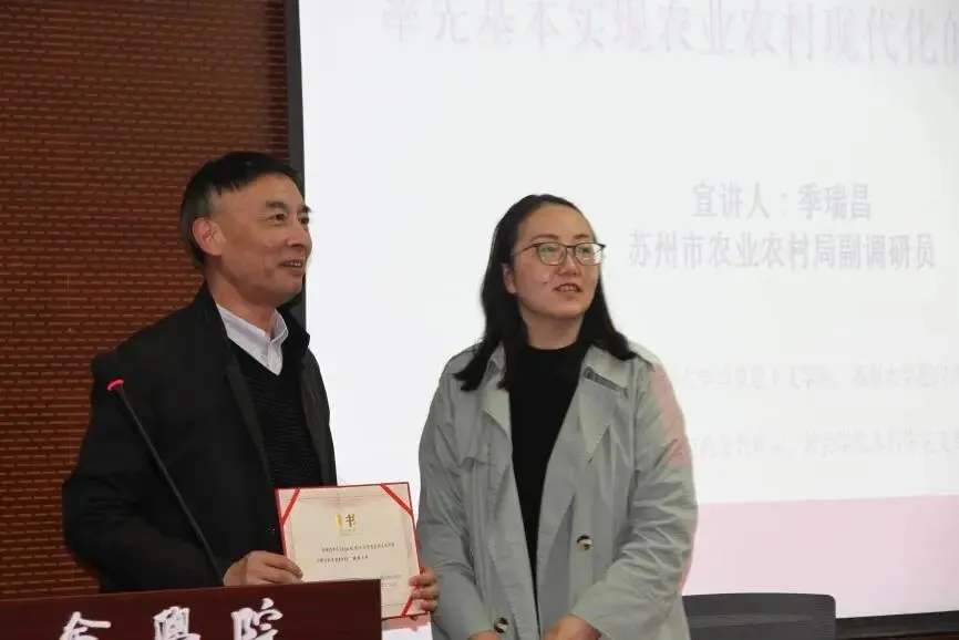 4月7日下午,苏州大学形势与政策大讲堂暨苏州市百名局长百场宣讲活动在苏州大学独墅湖校区1005-5448学术报告厅顺利举行。这是苏州大学思政课实践教学改革创新的持续探索。苏州市农业农村局副调研员季瑞昌、苏州大学社会学院党委副书记、副院长郝珺及社会学院本科生党员共同参与本次活动。