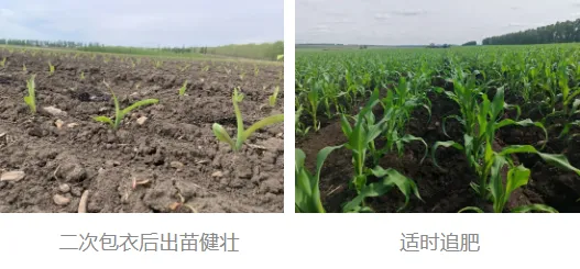 (3)优选夏管技术措施:小喇叭口期(8展叶前)喷施胺鲜酯 · 乙烯利(20毫升/亩),缩短基部节间,增加茎粗和气生根数量,抗倒伏能力提升60%;在拔节期、小喇叭口期和穗期三遍喷施氨基酸水溶肥、磷酸二氢钾及尿素搭配杀虫杀菌剂,前期补充高纯锌,防病、增产、促早熟。