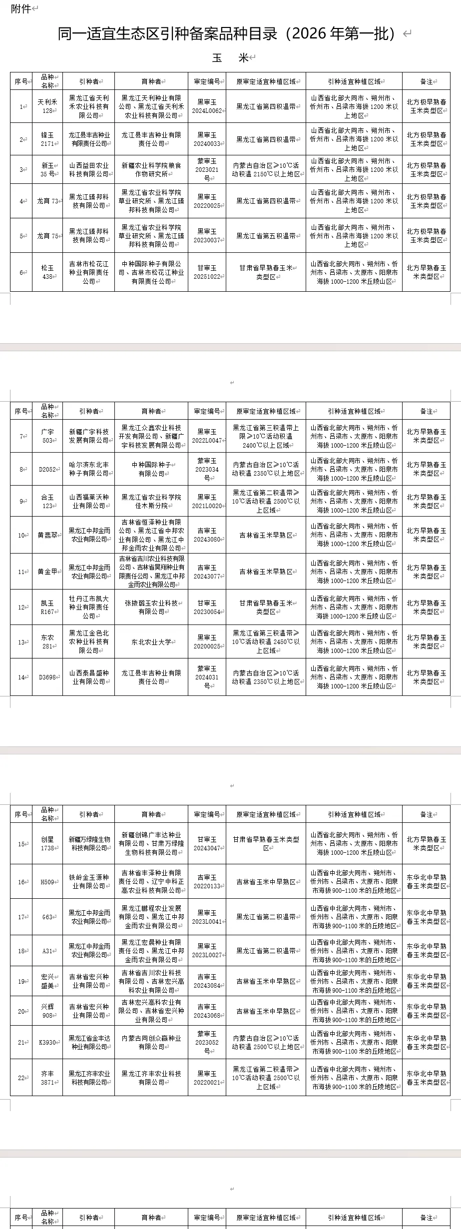 附件:同一适宜生态区引种备案品种目录(2026年第一批)