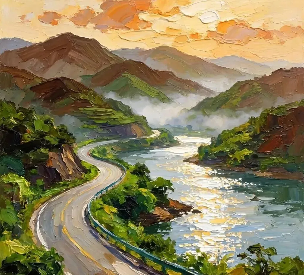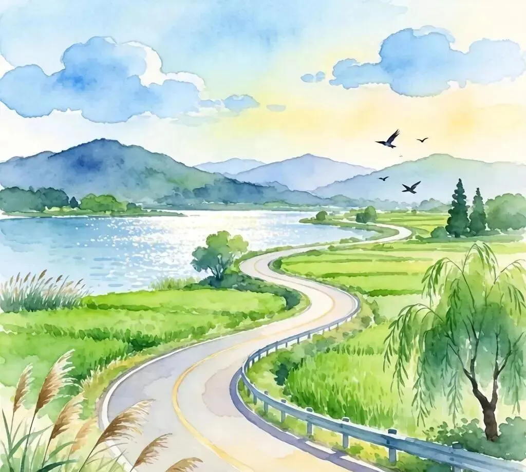 我顺着她的手指看过去,彩虹路延伸向远方,消失在群山之间。那一刻我忽然明白,这条路不只是一条路,它是溧阳人的“金扁担”——一头挑着绿水青山,一头挑着金山银山。