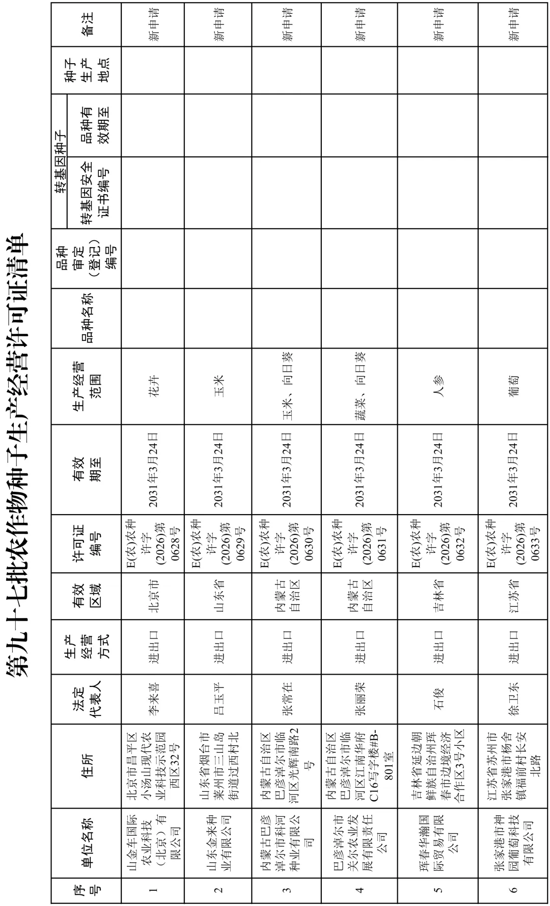 农业农村部:第九十七批28家种企获农作物种子生产经营许可证