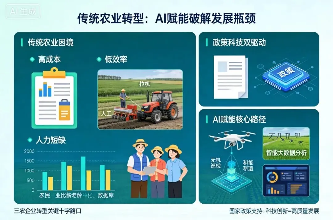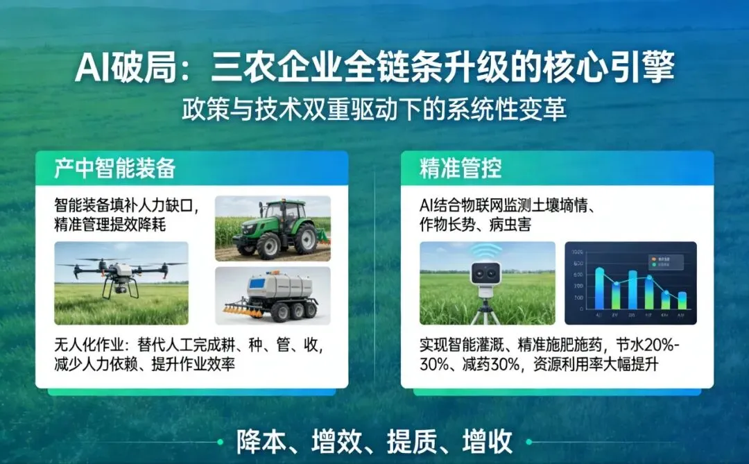 在政策与技术双重驱动下,AI正为三农企业带来降本、增效、提质、增收的系统性变革: