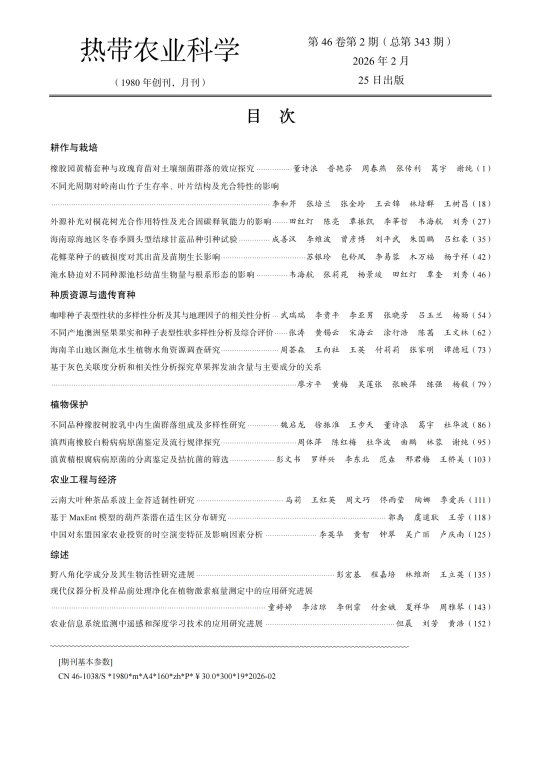 《热带农业科学》2026年第2期电子刊
