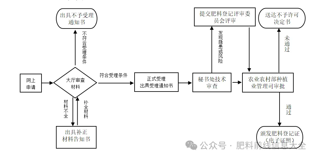 12.2 农业农村部政务服务大厅肥料窗口审查申请人提交的肥料登记相关资料,农业农村部肥料登记评审委员会秘书处核验申请人提交的肥料样品,申请资料齐全符合法定形式且肥料样品符合要求的予以受理。