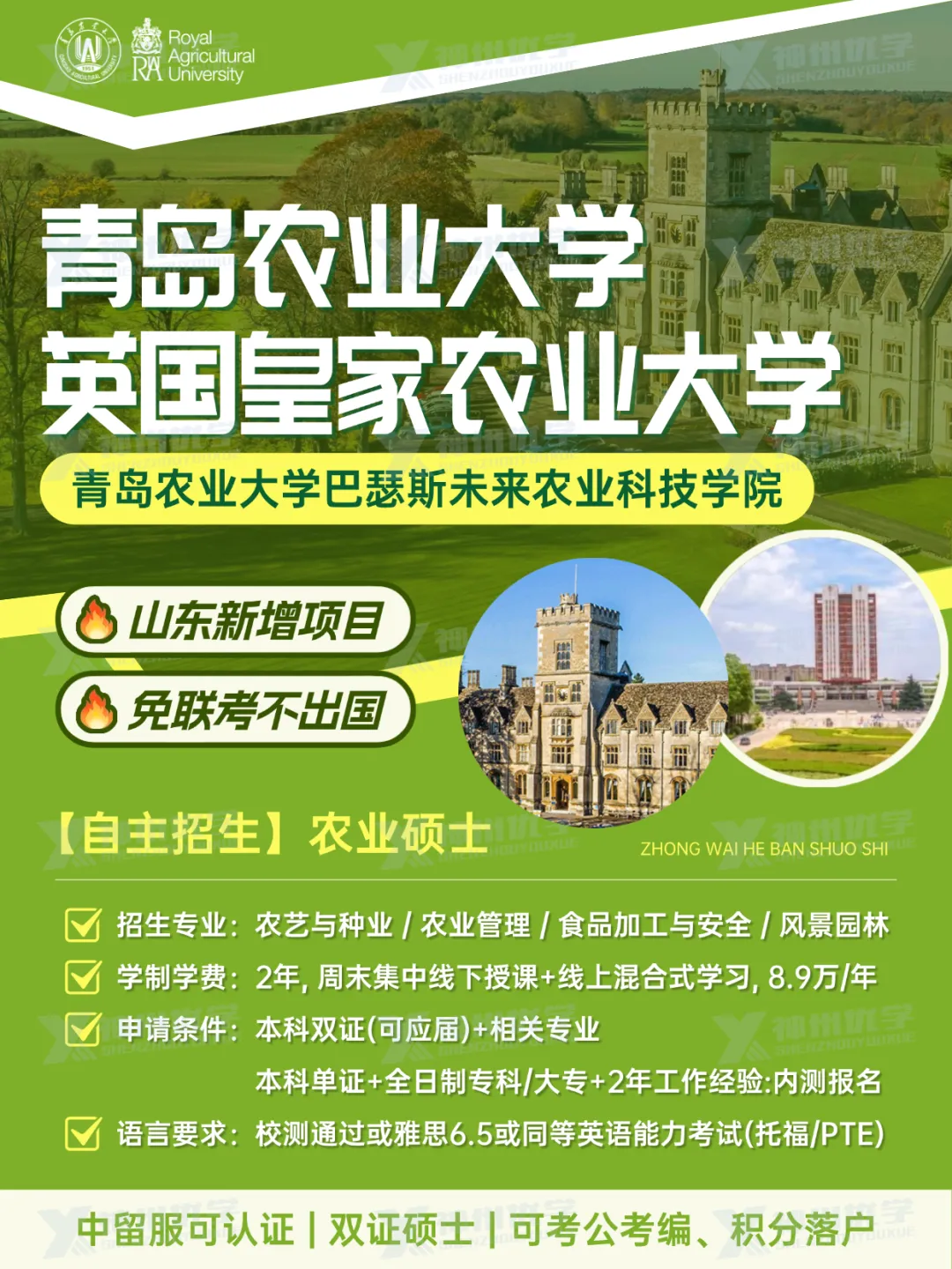 青岛农业大学是山东省属重点建设高校,教育部本科教学工作水平评估优秀学校,山东省“高水平大学”“高水平学科”建设单位,“山东特色名校工程”重点建设大学。学校与英国皇家农业大学合作设立的中外合作办学机构巴瑟斯未来农业科技学院,自2020年成立以来,连续五年获青岛市引进优质高等教育资源补助资金;2023年5月获批山东高校中外合作办学示范工程立项建设机构;2024年2月获批山东省专业特色学院;2025年5月成功承办了教育部中外合作办学联席会第十一次年会。学院已培养两届本科毕业生,双学位授予率达98.5%,升学率超56%,国(境)外深造学生中85.5%被帝国理工学院、新加坡国立大学、伦敦大学学院等QS排名前200高校录取。