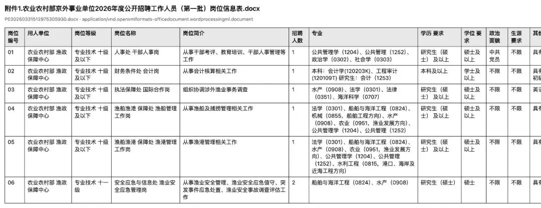 当前位置:首页>农业>农业农村部京外事业单位2026年度公开招聘工作人员公告(一)