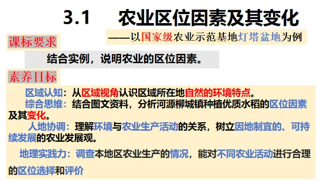 高一下期同步教学课件3.1 农业区位因素及其变化