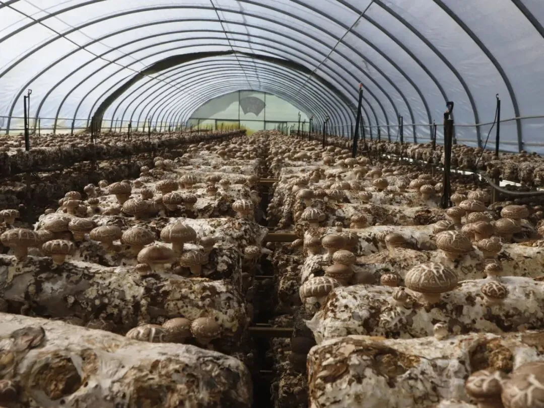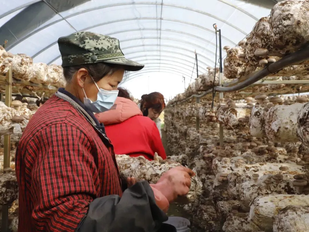 走进陕坝镇红星花菇乡村振兴产业园高大宽敞的种植大棚,一排排香菇菌棒均匀整齐地“站立”,一个个香菇朵儿撑着“小伞”,互连互牵,散发出阵阵清香。工人们在菌棚里有条不紊地采摘。