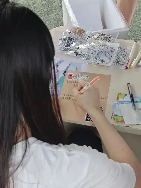 DIY体验区成为情感交流的重要平台。“智慧明信片”活动鼓励学生书写50字以内的励志话语,或自我激励,或温暖他人,通过随机交换的方式,让善意与力量在校园中流动。