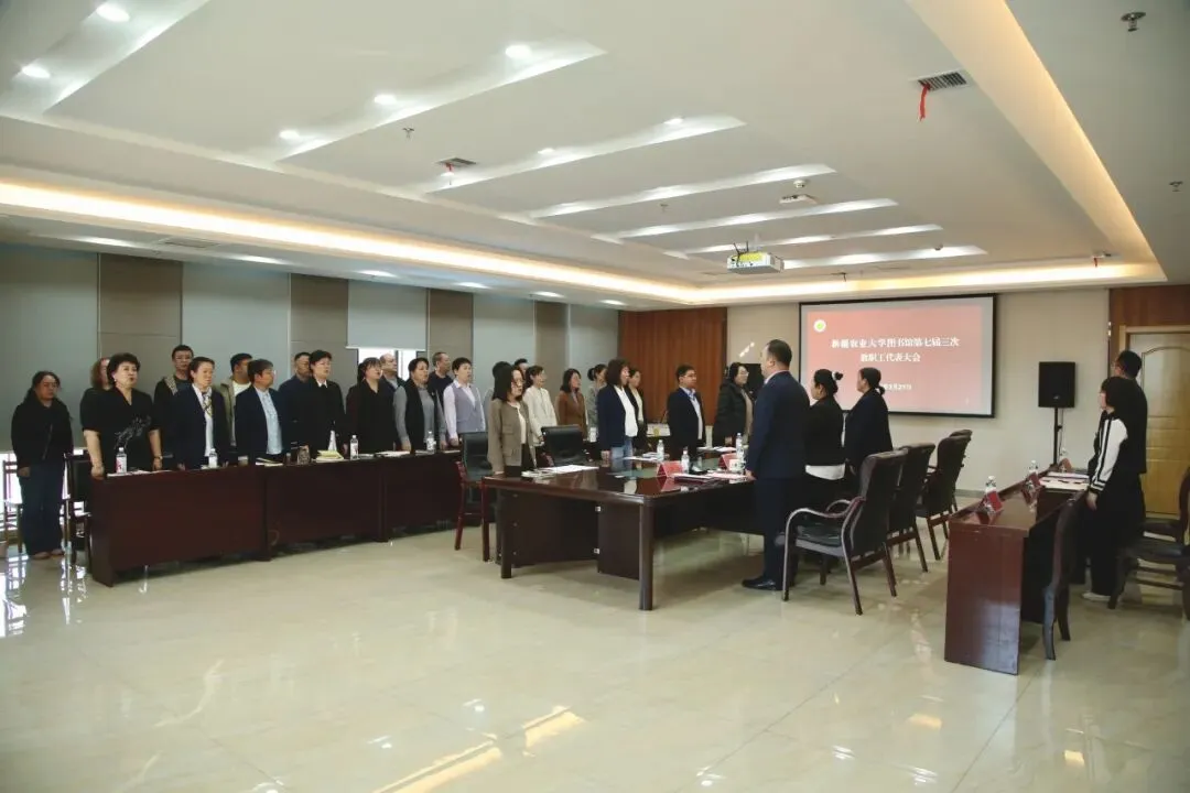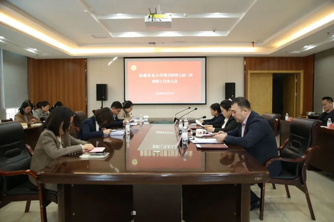 2026年3月31日上午11时,新疆农业大学图书馆第七届三次教职工大会在六楼会议室召开。图书馆党总支书记、副馆长兼学报编辑部主任赵晓露主持会议,馆长玉素甫江·玉素音及全体教职工参加大会。