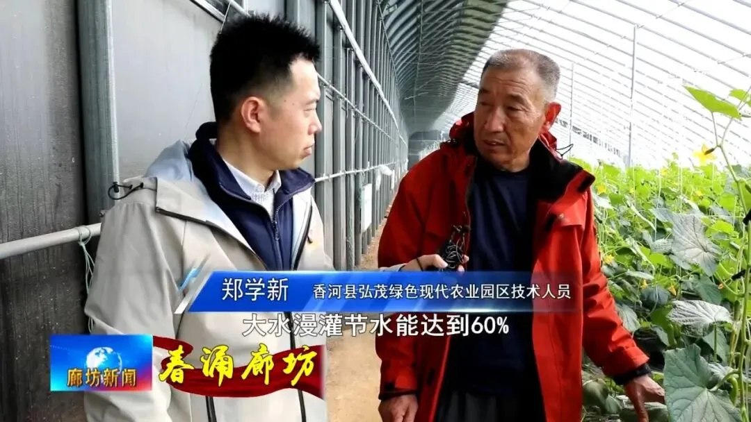 郑学新膜下滴灌咱们采用的是水肥一体化,从节水上能比普通的大水漫灌节水能达到60%,减少化肥使用30%。这样既有增产效益,又达到了环保效益,长势也没有病虫害,它能增产20%,提高咱们棚的产值效益。